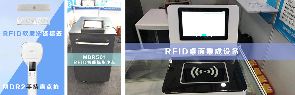 此次参展新品有:RFID软质洗涤标签、RFDI手持盘点拍、RFID智能拣货小车以及RFID桌面终端集成设备。