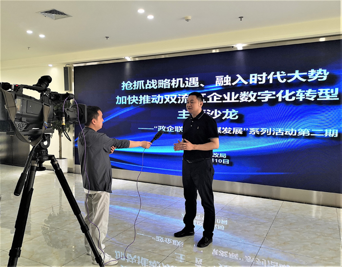 我公司总经理宋德利出席了此次沙龙活动,在接受采访时,宋总说:“通过对政策、新技术的解读,部分企业的经验分享,让我们对数字经济有了更深刻的认识,实施数字化转型,需要各行各业共同努力”。